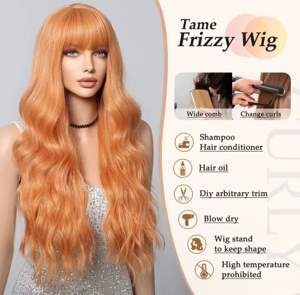 Turn heads with this bold orange synthetic wig, designed with voluminous big waves for a fun and eye-catching look. Perfect for parties, Halloween cosplay, or everyday wear, this wig adds instant personality and style to any outfit. Made from high-temperature resistant fiber, it can withstand heat styling for a custom look. Soft, full, and easy to wear — it’s the perfect statement piece for confident, playful vibes all year round.
